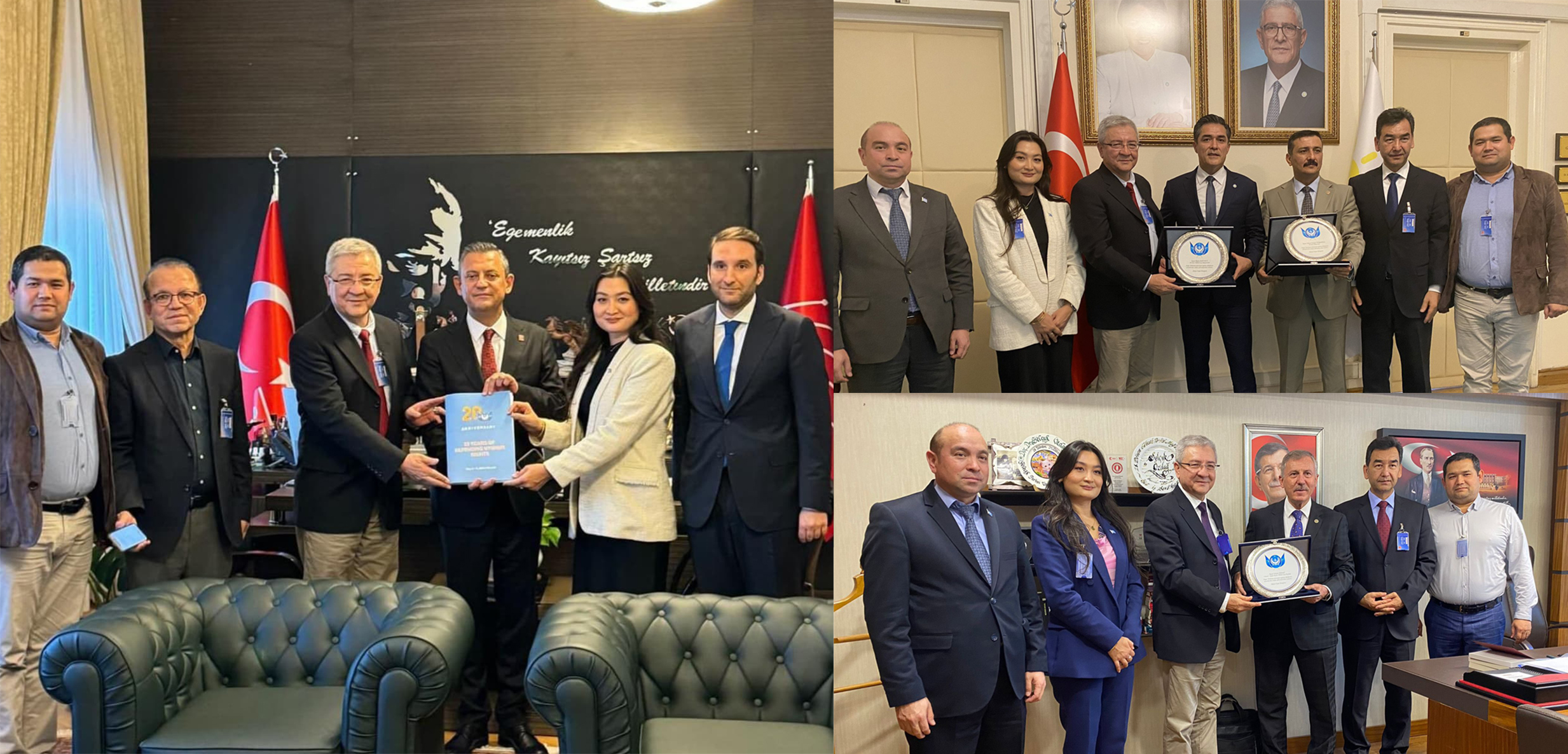 A delegation led by Assoc. Prof. Dr. Erkin Ekrem, President of the World Uyghur Congress, Abdureşit Abdulhamit, President of the World Uyghur Congress Foundation, and Abdulhamit Karahan, President of the Uyghur Academy Foundation, visited representatives of various political parties in the Parliament on October 8-9, 2024.