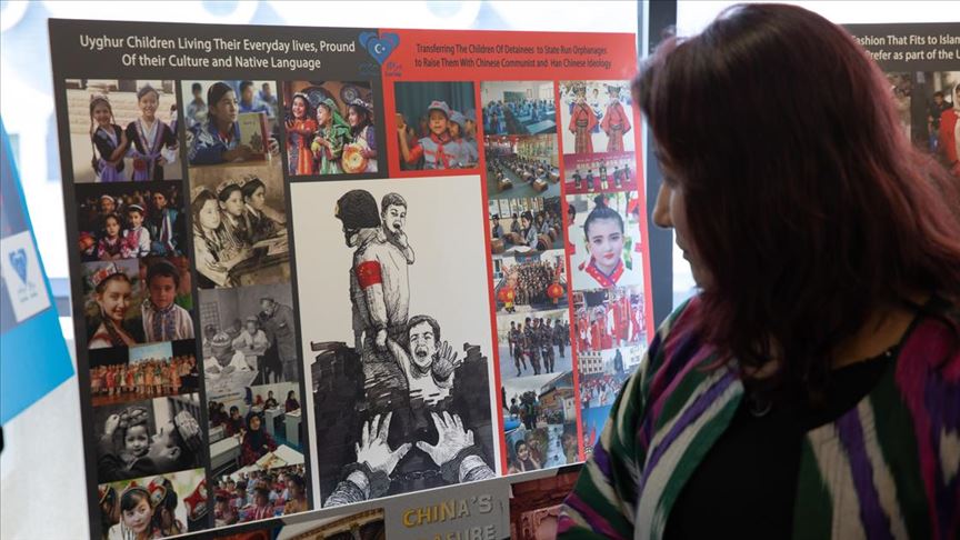 Uygur Türklerinin Çin tarafından toplama kamplarında tutulmasını ve maruz kaldıkları insan hakları ihlallerini eleştiren sergide, konuya ilişkin fotoğraflar dikkati çekti.