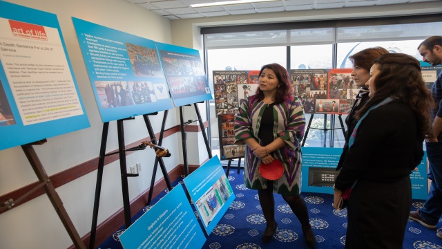 Uygurlar için Mücadele Hareketi’nin organize ettiği serginin açılışına Amerikalı insan hakları aktivistleri ve medya mensupları katıldı.