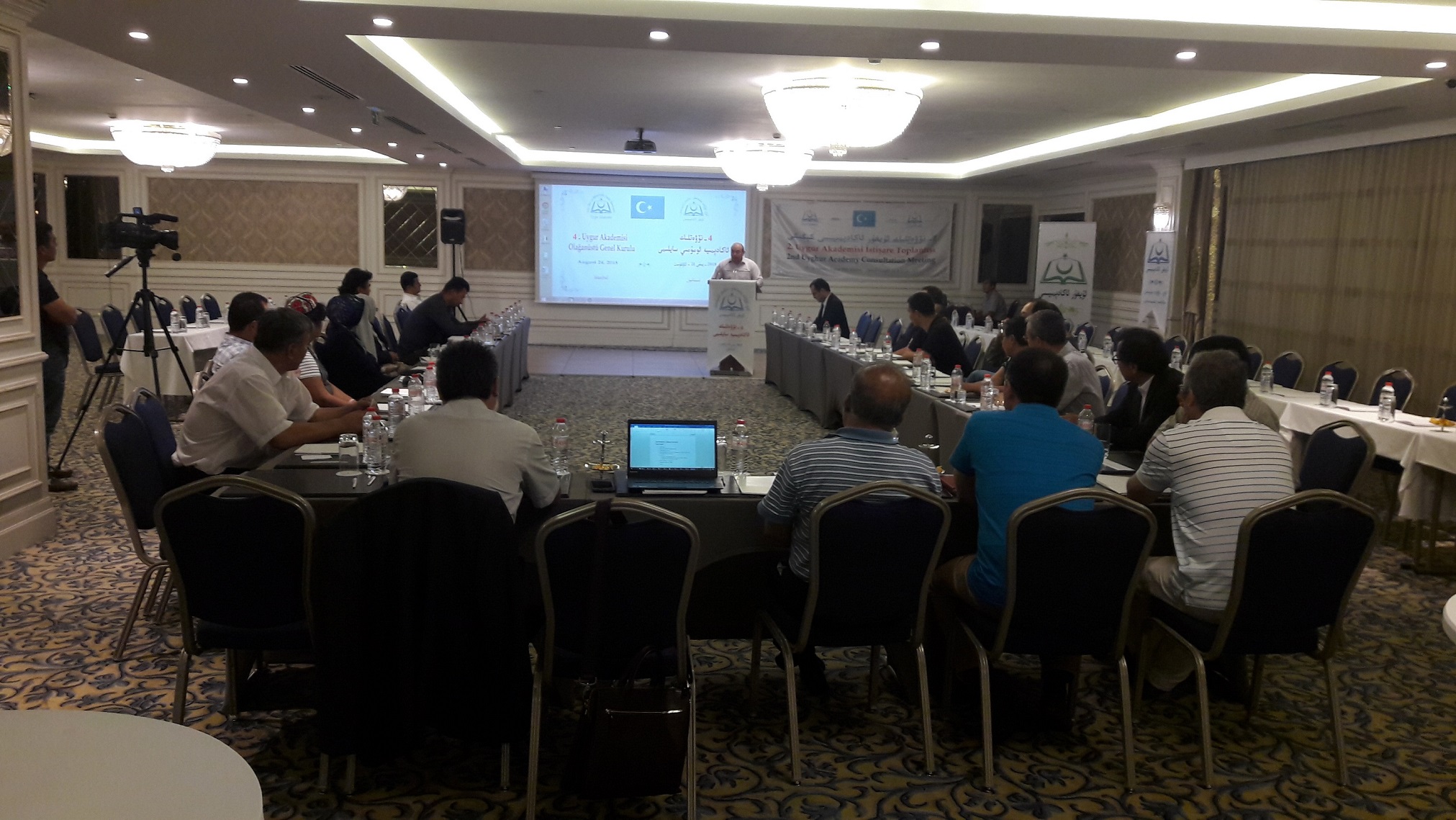 ئۇيغۇر ئاكادېمىيىسىنىڭ ئەزالىرى يىغىلغان بۇ يىغىن ئالدى بىلەن تۈركىيە ۋە شەرقىي تۈركىستان ئىستىقلال مارشىنىڭ ئوقۇلۇشى بىلەن باشلاندى. ئىستىقلال مارشلىرى ئوقۇلغاندىن كېيىن، ئۇيغۇر ئاكادېمىيىسىنىڭ رەئىسى ئابدۇلھەمىد قاراخان ئەپەندى ئۇيغۇر ئاكادېمىيىسىنىڭ 2015-يىلىدىن بۇيانقى ئۈچ يىلدا قىلىنغان خىزمەتلەر، قولغا كەلتۈرۈلگەن نەتىجىلەر ۋە يىتەرسىزلىكلەر ئۈستىدە تەپسىلىي دوكلات بەردى. ئۇ ئۇيغۇر ئاكادېمىيىسىنىڭ نۆۋەتتە ئۇيغۇر زىيالىلار توپلانغان كۈچلۈك بىر ئىلمىي جەمىئىيەتكە ئايلانغانلىقىنى تەكىتلەپ، ئاكادېمىيەنىڭ مۇھاجىرەتتىكى ئۇيغۇرلار ئارىسىدىكى ئوينىغان رولىنىڭ مۇھىم ۋە مىللىي ۋەزىپىسىنىڭ تولىمۇ ئېغىر ئىكەنلىكى ئۈستىدە توختالدى.