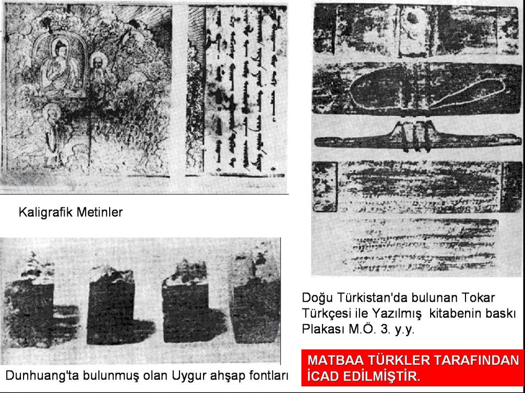 تۇرپان، بەشبالىق، قاراغوجا، ياركەنت، خوتەن ۋە باشقا ئۇيغۇر شەھەرلىرىدە ئىلىپ بېرىلغان تەتقىقاتلاردا قولغا چۇشۇرۇلگەن، قاتتىق ياغاچتىن ياسالغان ھەرىكەتچان ھەرپلەر ئۇيغۇر تۈركلىرىدە مەتبەئە سەنئىتىنىڭ مەۋجۇتلۇقىنى ئىنكار قىلغۇسىز دەرىجىدە ئسپاتلىماقتا.