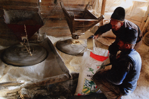 كىشىلەر ئادەتتە يوغان ياغاچتىن نور چېپىپ ، كويلا بېشىنى پۇختا قىلىپ نورنى بېكىتىدۇ . ئاندىن كېيىن غۇلۋانى تاختاي بىلەن قىلىدۇ . تۈگمەننىڭ ئاستىن تېشىنى غۇلۋىنىڭ ئۈستىگە قويۇپ ، چاقنى غۇلۋىغا ئەكىرىپ ، ئاختىنىڭ بېشىغا ، ئەركەك تۇرۇمنىڭ بېشىغا چاقپەلەكنى سالىدۇ . ئاندىن شۈمەكنى ئاستىن تاشنىڭ ئاستىدىن ئۈستىگە چىقىرىدۇ . ئاندىن شۈمەكنىڭ ئۈستىگە پاقىنى قويۇپ ، ئۈستىن تاشنى ياپىدۇ . چاقنىڭ بوي تۆمۈرىگە پەركارنى سېلىپ ، بىر ئادەم غۇلۋانىڭ ئىچىگە كىرىپ چاقنى چۆرگىلىتىدۇ . شۇنىڭدىن كېيىن ئۇنلۇق ، يان تاختا قاتارلىقلارنى بېكىتىدۇ . ئاندىن ئۈستى تاشنى ئوقنىڭ ئۈستىگە قويۇپ ، بىر ئادەم غۇلۋاغا كىرىپ ، تۈگمەننى بىر قانچە قېتىم چۆرگىلىتىپ سىناپ باقىدۇ . چاتاق بولمىسا ، سۈگەن ، چاناق ، چېقىلدۇرغۇچ قاتارلىقلارنى بېكىتىدۇ . شۇنداق قىلىپ تۈگمەننىڭ بارلىق تەييارلىقلىرى پۈتكەن بولىدۇ .
