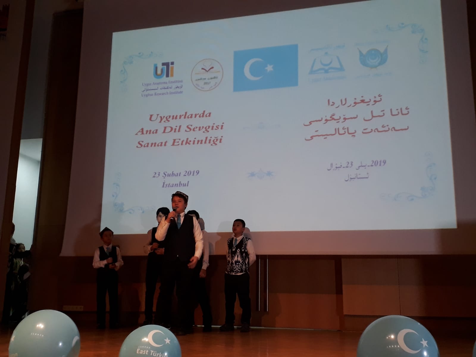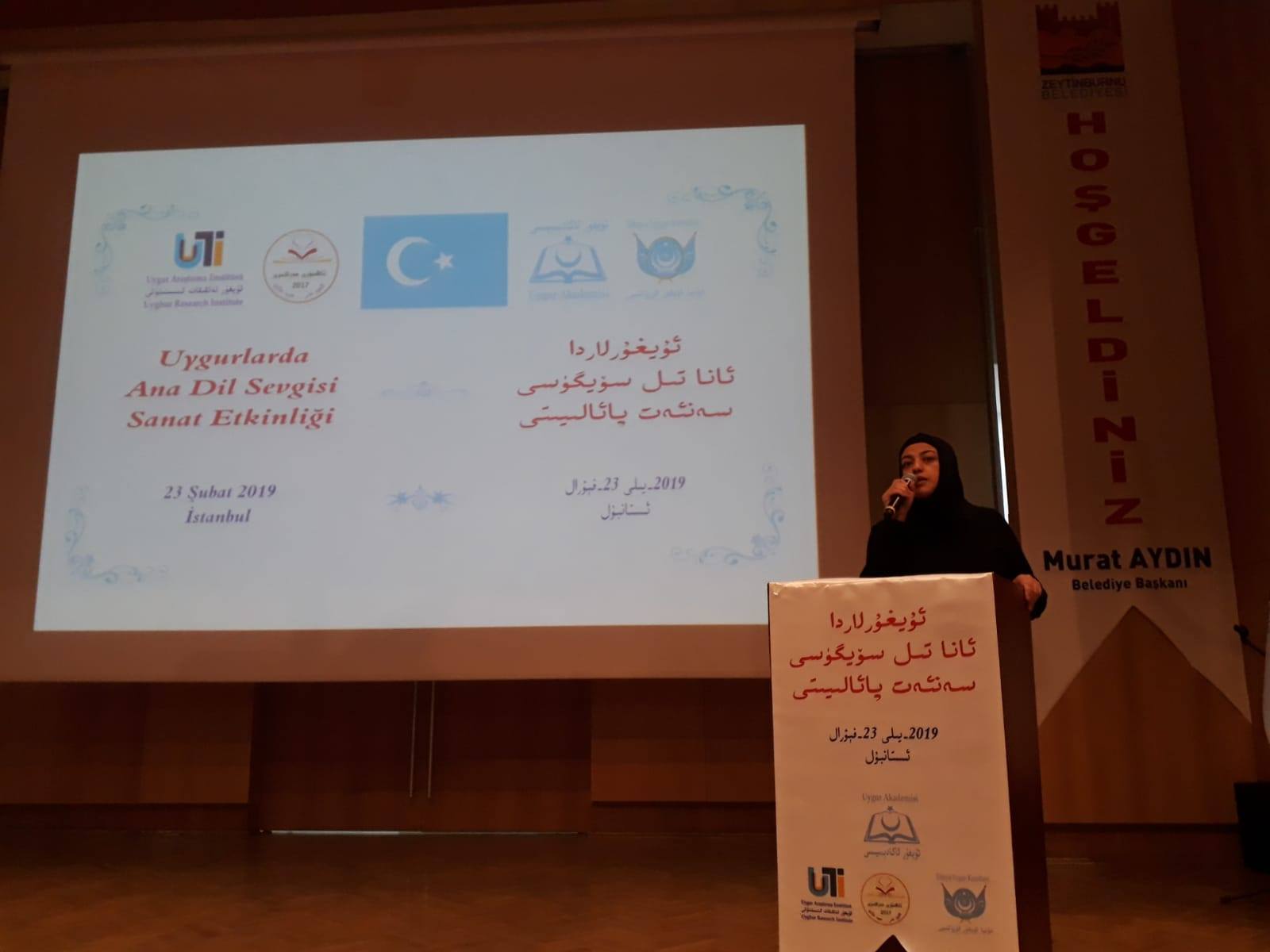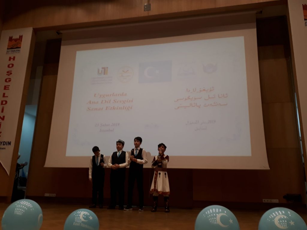 ئۇيغۇر ئاكادېمىيىسىنىڭ تەشكىللىشى، ئۇيغۇر تەتقىقات ئىنىستىتۇتى، دۇنيا ئۇيغۇر قۇرۇلتىيى ۋە تاڭنۇرى تەلىم-تەربىيە مەركىزىنىڭ ھەمكارلىقىدا 2019-يىللىق «خەلقئارا ئانا تىل كۈنى» مۇناسىۋىتى بىلەن 2-ئاينىڭ 23-كۈنى شەنبە كەچ سائەت 7:00 دە ئىستانبۇل زەيتىنبۇرنۇ بەلەدىيەسى كازلىچەشمە نىكاھ دائىرىسى ئاق دېڭىز يىغىن زالىدا «ئۇيغۇرلاردا ئانا تىل سۆيگۈسى» سەنئەت پائالىيىتى ئۆتكۈزۈلدى. پائالىيەتكە ئىستانبۇلدىكى شەرقىي تۈركىستانلىق ياش-ئۆسمۈرلەر ۋە ئاتا-ئانىلار بولۇپ 350 ئەتراپىدا كىشى قاتناشتى.