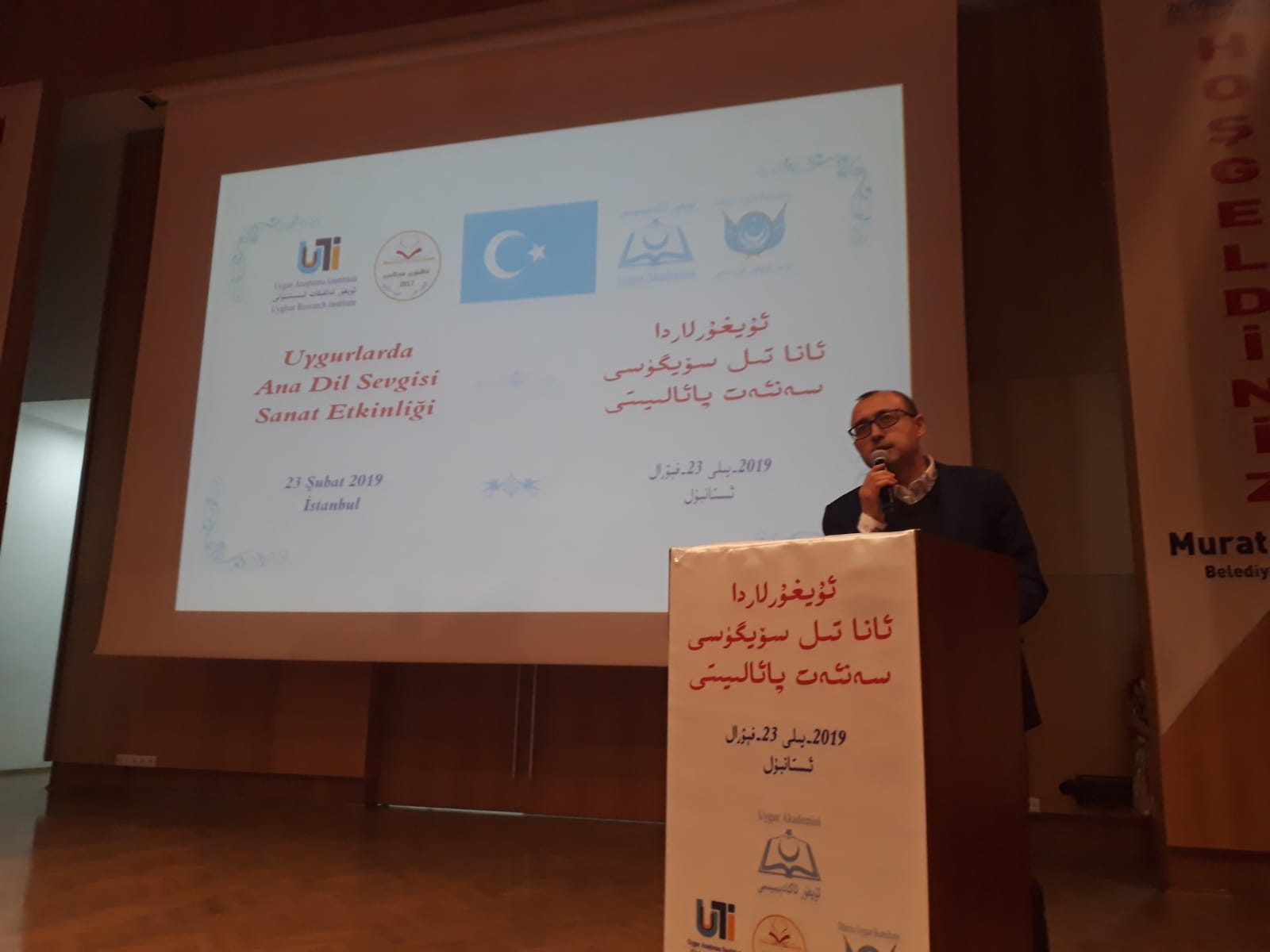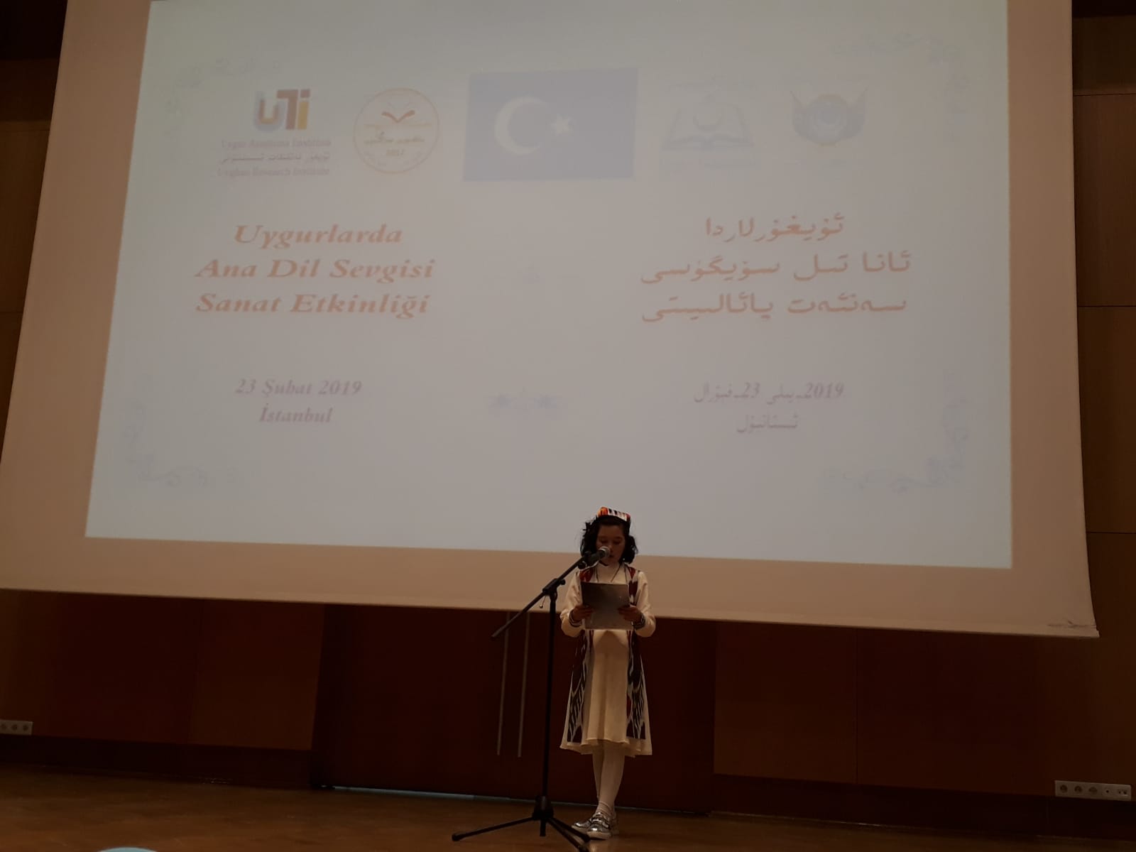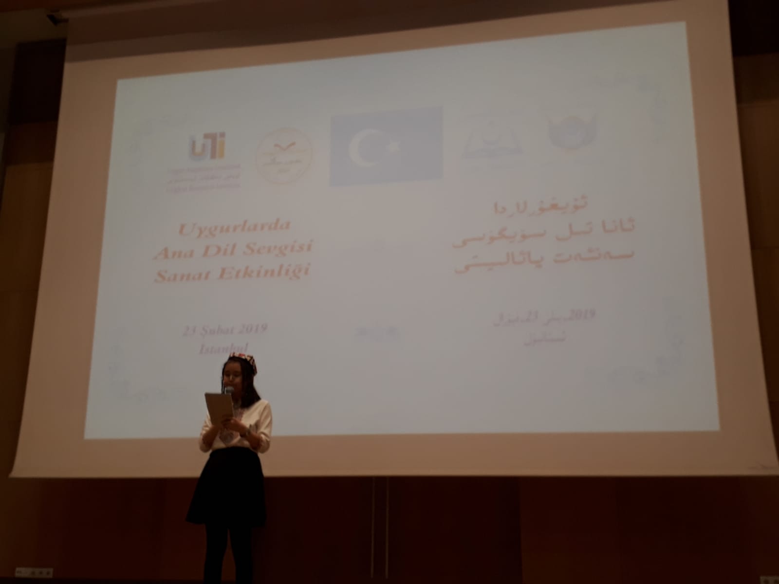 ئۇيغۇر ئاكادېمىيىسىنىڭ تەشكىللىشى، ئۇيغۇر تەتقىقات ئىنىستىتۇتى، دۇنيا ئۇيغۇر قۇرۇلتىيى ۋە تاڭنۇرى تەلىم-تەربىيە مەركىزىنىڭ ھەمكارلىقىدا 2019-يىللىق «خەلقئارا ئانا تىل كۈنى» مۇناسىۋىتى بىلەن 2-ئاينىڭ 23-كۈنى شەنبە كەچ سائەت 7:00 دە ئىستانبۇل زەيتىنبۇرنۇ بەلەدىيەسى كازلىچەشمە نىكاھ دائىرىسى ئاق دېڭىز يىغىن زالىدا «ئۇيغۇرلاردا ئانا تىل سۆيگۈسى» سەنئەت پائالىيىتى ئۆتكۈزۈلدى. پائالىيەتكە ئىستانبۇلدىكى شەرقىي تۈركىستانلىق ياش-ئۆسمۈرلەر ۋە ئاتا-ئانىلار بولۇپ 350 ئەتراپىدا كىشى قاتناشتى.