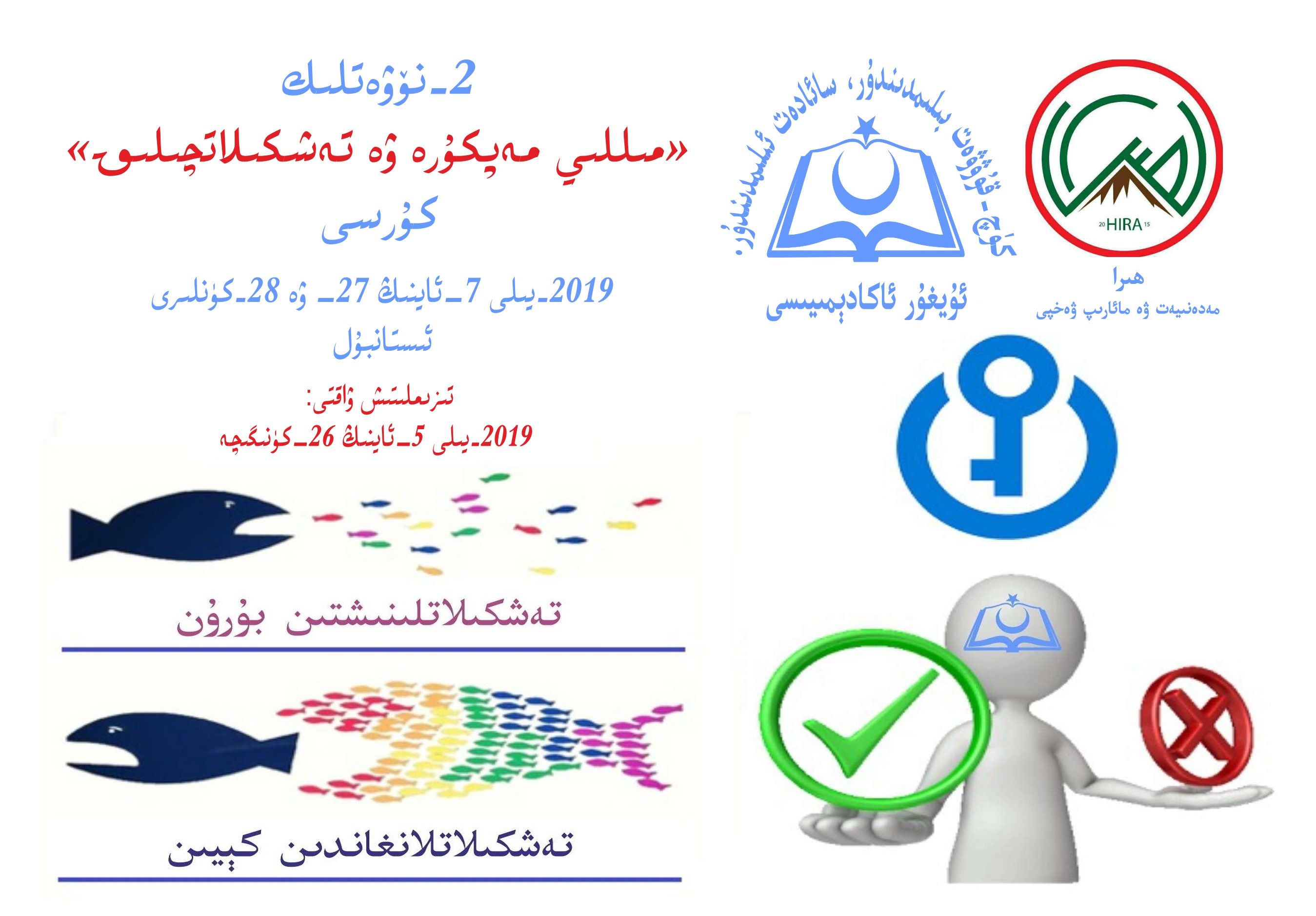كۇرسقا قاتناشقان ياشلارنىڭ تەكلىپىگە بىنائەن، ئۇيغۇر ئاكادېمىيىسىنىڭ ئورۇنلاشتۇرۇشى ۋە ھىرا مەدەنىيەت ۋە مائارىپ ۋەخپىنىڭ ھەمكارلىقىدا، «مىللىي مەپكۇرە ۋە تەشكىلاتچىلىق» كۇرسىنىڭ 2-قېتىملىقى 2019–يىلى 7–ئاينىڭ 27– ۋە 28-كۈنلىرى ئىستانبۇلدا ئۆتكۈزۈلىدۇ. بۇ قېتىمقى كۇرسقا ئەڭ كۆپ بولغاندا 15 ئوقۇغۇچى قوبۇل قىلىنىدىغان بولۇپ، قاتنىشىشنى خالايدىغان ئۇيغۇر ياشلىرىنىڭ ئېلخەت ياكى تېلىفۇن ئارقىلىق ۋاقتىدا تىزىملىتىشى تەلەپ قىلىنىدۇ.