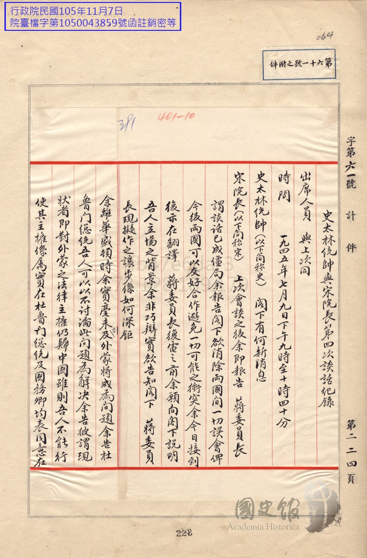 مارشال ستالىن ۋە مىنىستېر سۇڭ نىڭ تۆتىنچى قېتىملىق سۆھبىتىنىڭ خاتېرىسى