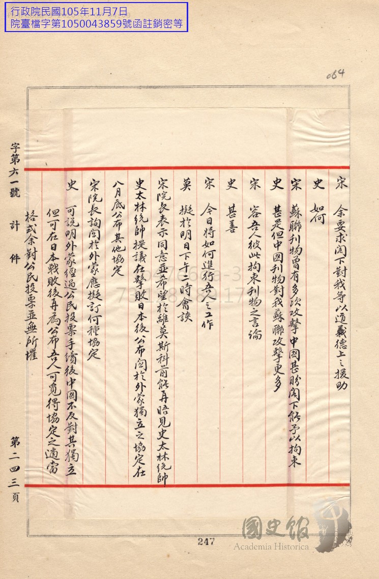 مىنىستېر سۇڭ (تۆۋەندە سۇڭ دەپ يېزىلىدۇ): ئۆتكەنكى قېتىملىق سۆھبەتتىن كېيىن مەن جياڭ ۋېييۈەنجاڭغا دوكلات قىلدىم. سۆھبەتنىڭ قاتمال ھالەتكە كېلىپ قالغانلىقىنى ۋە جانابىڭىزنىڭ ئىككى دۆلەت ئارىسىدىكى بارلىق ئۇقۇشماسلىقلارنى تۈگىتىپ، بۇندىن كېيىن ئىككى دۆلەتنىڭ دوستانە ھەمكارلىق ئورنىتىپ، ھەرقانداق توقۇنۇشتىن خالىي بولۇشنى ئۈمىد قىلىدىغانلىقىڭىزنى ئېيتتىم. بۈگۈن مەن جاۋاب خەت تاپشۇرۇپ ئالدىم ۋە ھازىر تەرجىمە قىلىنىدۇ. جياڭ ۋېييۈەنجاڭنىڭ جاۋاب تېلگىراممىسىنى ئوقۇپ ئۆتۈشتىن بۇرۇن مەن جانابىڭىزغا ئۆز مەيدانىمنىڭ ئارقا كۆرۈنۈشىنى بىر چۈشەندۈرۈپ ئۆتۈشنى خالايمەن. پېقىر ھەرگىزمۇ گەپدانلىق قىلىۋاتقىنىم يوق. ئەمەلىيەتتە، جانابىڭىزغا جياڭ ۋېييۈەنجاڭنىڭ قانچىلىك دەرىجىدە چوڭ يول قويۇۋاتقانلىقىنى بىلدۈرۈپ ئۆتمەكچىمەن.