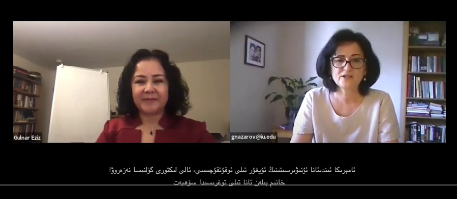 ئامېرىكا خارۋارد ئۇنىۋېرسىتى ئۇيغۇر تىلى ئوقۇتقۇچىسى ۋە ئامېرىكا ئۇيغۇر ئاكادېمىيىسىنىڭ ئەزاسى گۈلنار ئەزىز خانىمنىڭ رىياسەتچىلىكىدە، ئامېرىكا ئىندىئانا ئۇنىۋېرسىتى ئۇيغۇر تىلى ئوقۇتقۇچىسى، ئالى لىكتۇر ۋە ئامېرىكا ئۇيغۇر ئاكادېمىيىسىنىڭ ئەزاسى گۈلنىسا نەزەروۋا خانىم بىلەن ئىلىپ بېرىلغان ئۇيغۇر ئانا تىلنىڭ مۇھىملىقى توغرىسىدا سۆھبەت ئىلىپ بېرىلدى.