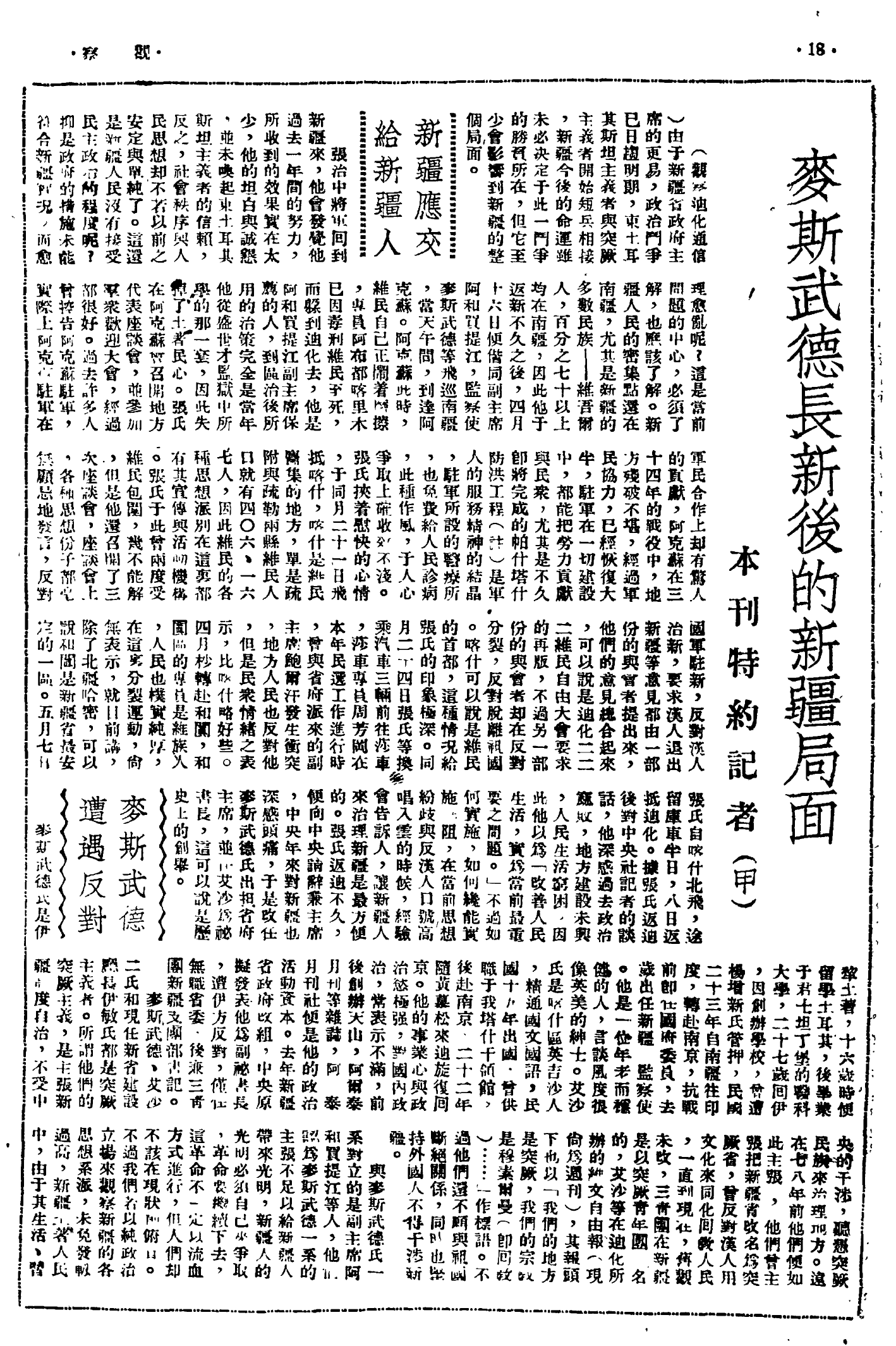مەزكۇر ماقالە بېسىلغان «كۈزىتىش» (观察) ژورنىلىنىڭ 1947-يىلى 21-ئىيۇن كۈنى نەشىر قىلىنغان 2-جىلد 17-سانىنىڭ مۇقاۋىسى