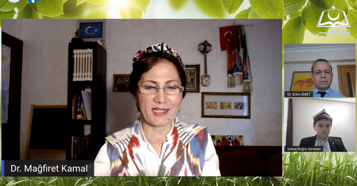 دوكتور مەغپىرەت كامال خانىمنىڭ رىياسەتچىلىكىدە ئېلىپ بېرىلىۋاتقان ئاكادېمىيە سۆھبىتى بۇ قېتىم «نورۇز بايرىمى» مۇناسىۋىتى بىلەن مەخسۇس «ئۇيغۇرلاردا نورۇز بايرىمى ۋە ئەھمىيىتى» تېمىسىغا ئايرىلغان بولۇپ، بۇ ھەقتە تەتقىقات ئېلىپ بارغان ئەنقەرە ئۇنىۋېرسىتېتى ئوقۇتقۇچىسى، دۇنيا ئۇيغۇر قۇرۇلتىيى باش كاتىبى دوتسېنت ئەركىن ئەمەت ئەپەندى بىلەن سۆھبەت ئېلىپ بېرىلدى ۋە ياش – ئۆسمۈرلىرىمىزدىن سۇتۇق بۇغرا قاراخان نورۇزغا ئاتاپ ئۇيغۇرچە شېئىر ئوقۇپ بەردى.