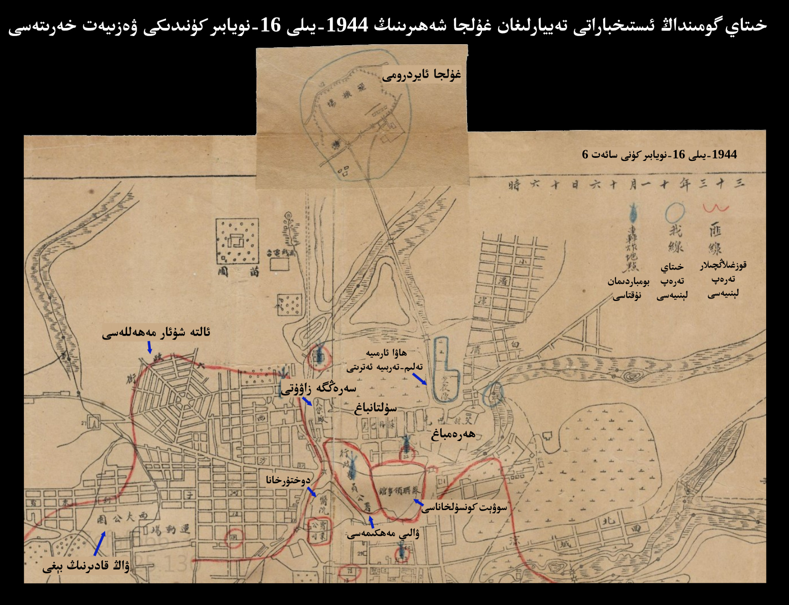 ئىلاۋە: ھۆرمەتلىك ئوقۇرمەن، مەزكۇر يازما شەرقىي تۈركىستان مىللىي ئارمىيەسى تەرىپىدىن 1945-يىلى جىڭ ئۇرۇشىدا ئەسىرگە چۈشكەن خىتاي گومىنداڭ ئارمىيەسى گېنىرال مايورى گوچى (郭岐) يازغان «شىنجاڭدىكى قانلىق جەڭ» (黄沙碧血战新疆) ناملىق ئەسلىمە كىتابتىن تەرجىمە قىلىپ تەييارلاندى. مەزكۇر كىتاب 1944-يىلى پارتىلىغان نويابىر مىللىي ئازاتلىق ئىنقىلابى جەريانىدىكى مۇھىم جەڭلەر ھەققىدە خىتاي گومىنداڭ قىسىملىرىنىڭ پوزىتسىيەسى ۋە تەھلىللىرىگە مۇناسىۋەتلىك مۇھىم مەلۇماتلار بېرىدۇ. بۇ يازما كىتابنىڭ ئىنقىلاب جەريانىدىكى غۇلجانى ئازاد قىلىش جېڭى ۋە مەشھۇر ھەرەمباغ ئۇرۇشىنىڭ جەريانى تونۇشتۇرۇلغان بابلىرىدىن تەرجىمە قىلىنغان بولۇپ، خىتاي گېنىرال گوچى ئەينى چاغدىكى خىتاي ئەمەلدارلىرى ۋە ھەربىيلىرىنىڭ «توپىلاڭنى سوۋېت قوزغىدى، بۇ پۈتۈنلەي سوۋېتنىڭ ئېغۋاسى، سوۋېت قىزىل ئارمىيەسى جەڭگە كىردى» دېگەندەك ئاساسسىز سەپسەتەلىرىنى تاكى 1980-يىللارنىڭ ئوتتۇرىغىچە ساقلاپ كەلگەن ۋە ئەسلىمەسىگە كىرگۈزگەن. بۇ بابلاردىكى كىشىنى چۆچۈتىدىغان يەنە بىر نۇقتا، ھەرەمباغدا قامىلىپ قالغان خىتاي ھەربىي ۋە كۆچمەنلىرىنىڭ ساق قېلىش ئۈچۈن ئادەم گۆشى يېگەنلىكىدىن ئىبارەت. گېنىرال گوچى قوزغىلاڭچىلارنىڭ ھەرەمباغنى قاتتىق قامال قىلىشىنى «تەبىئىتىدىكى ۋەھشىيلىك»دەپ ئاتايدۇ. ئەمما ئۆزلىرىنىڭ ئاتالمىش «ۋەتەن تۇپرىقىنى تۇتۇپ تۇرۇش» ئۈچۈن ئادەم گۆشى يېگەنلىكىنى ۋە كۆچمەنلەرنىڭ ئۆز بالىلىرىنى خىتاي ئەسكەرلەرگە «غىزا» قىلىش ئۈچۈن بوغۇزلىغانلىقىنى قانداقتۇر «ۋەتەنپەرۋەرلىك»دەپ تەرىپلەيدۇ. مەزكۇر نۇقتانىڭ ئەدەبىي ئەسەرلەردە ئەمەس بەلكى بىر خىتاي گېنىرالىنىڭ ئەسلىمەسىدە كۆرۈلۈشى ۋە ئۇنىڭغا مەدھىيە ئوقۇلۇشى كىشىنى ئويغا سالىدۇ. 11 ماددىلىق تېنچلىق بىتىمى ئىمزالانغاندىن كېيىن، گېنىرال گوچى ئۈرۈمچى تۈرمىسىدىكى ئۇيغۇر ئىنقىلابچىلاردىن ئابدۇرېھىم ئەيسا قاتارلىقلار بىلەن ئالماشتۇرۇلغان ۋە بىتىمگە ئاساسەن ماناس ئارقىلىق خىتاي گومىنداڭ تەرەپكە ئۆتكۈزۈپ بېرىلىپ، كېيىن تەربىيلەش-ئۆزگەرتىش ئۈچۈن لەنجۇغا يوللانغان. 1949-يىلى خىتاي گومىنداڭ تەرەپ ئىچكى ئۇرۇشتا كومۇنىستلارغا يېڭىلگەندىن كېيىن، گېنىرال گوچى تەيۋەنگە قاچقان ۋە ھەربىي مەشقاۋۇل بولۇپ خىزمەت قىلىپ، 1993-يىلى 88 يېشىدا ئۆلگەن. گوچى شەرقىي تۈركىستاندا بېشىدىن ئۆتكەنلەرنى 1986-يىلى كىتاب قىلىپ تەيۋەندە نەشىر قىلدۇرغان.
