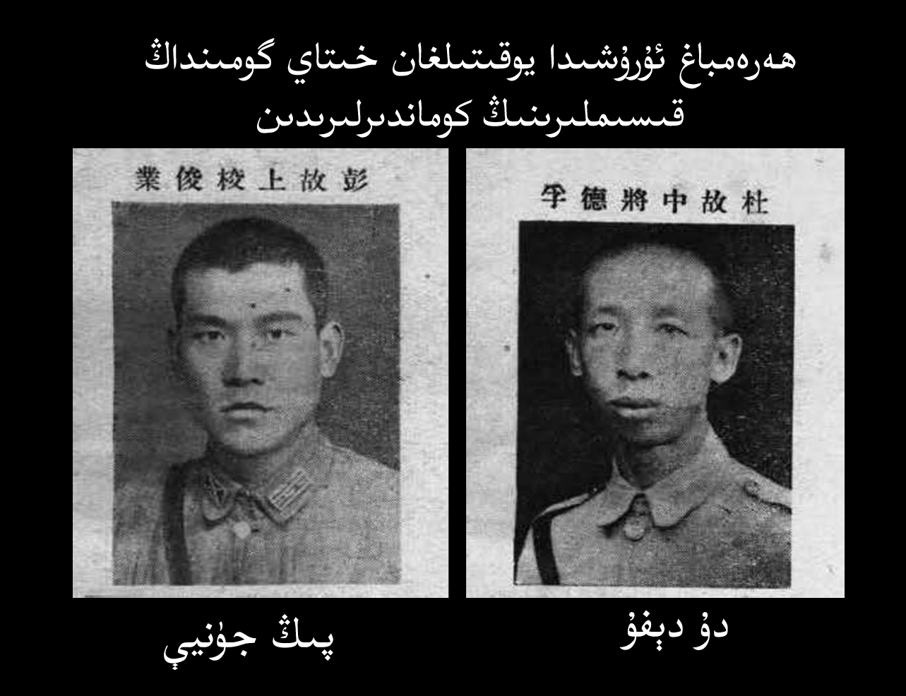 مەنبە: گوچى (郭岐)، «شىنجاڭدىكى قانلىق جەڭ» (黄沙碧血战新疆)، 1986-يىلى.