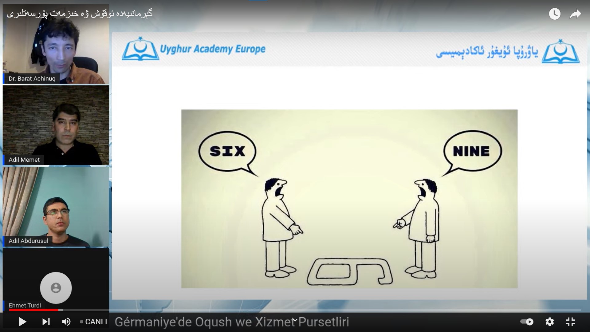 گېرمانىيەدە ئوقۇغان ۋە خىزمەت قىلىۋاتقان ئادىل مەمەت، ئادىل ئابدۇرۇسۇل ۋە ئەھمەد تۇردى ئەپەندى قاتارلىق ئۇيغۇر تەتقىقاتچىلار گېرمانىيەدىكى ئوقۇش ۋە خىزمەت پۇرسەتلىرى ھەققىدە تەپسىلىي مەلۇمات بەردى. دۇنيانىڭ ھەر قايسى دۆلەتلىرىدىن گېرمانىيەدە ئوقۇشنى ۋە خىزمەت قىلىشنى ئارزۇ قىلىۋاتقان ئۇيغۇر قېرىنداشلارنىڭ بۇ قېتىمقى سۆھبەتتىن ئۆزىگە كېرەكلىك مەلۇماتلارغا ئېرىشىۋېلىشىغا تىلەكداشمىز.