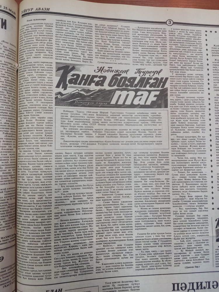 ئاۋۇت ئاكا 1980-يىللاردا ئالىي مەكتەپ ئوقۇغۇچىسى ۋاقتىمدا، يەنى 1981-1985-يىللىرى بېيجىڭدىكى مەركىزىي مىللەتلەر (ئىنستىتۇتى) ئۇنىۋېرسىتېتىدا ئوقۇۋاتقىنىمدا، يەنى «بالىلىق» دەۋرىمدە يازغان تارىخى رومانىم-« قانغا بويالغان تاغ» نىڭ 2-بابىنىڭ « ئۇيغۇر ئاۋازى» گېزىتىنىڭ 94-يىللىرىدىكى سانلىرىدا ئېلان قىلىنغان پارچىلىرىنى بۈگۈن قايتىدىن كۆرۈشكە مۇيەسسەر قىلدى.