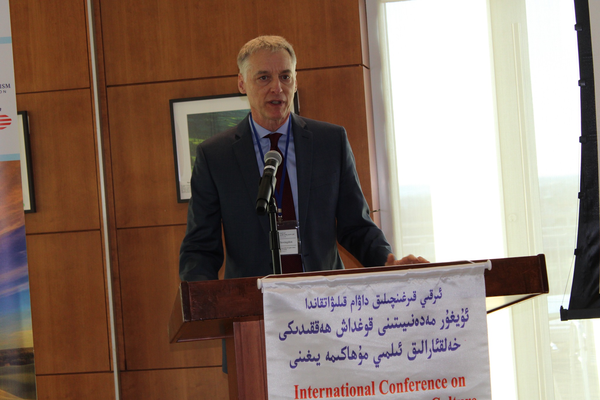 ئىندىيانا ئۇنىۋېرسىتېتىنىڭ پروفېسسورى گاردنېر بوۋىڭدون بۇ مۇھاكىمە يىغىنىدا قىلغان سۆزىدە خىتاي كوممۇنىستلىرىنىڭ ئۇيغۇر رايونىنى ئىدارە قىلىش تارىخىنى قىسقىچە بايان قىلىپ ئۆتتى. ئۇنىڭ قارىشىچە، ماۋ زېدۇڭ ھۆكۈمىتى سوۋېت ئىتتپاقىنىڭ مىللەتلەر سىياسىتىنى مودېل قىلىپ ئاپتونومىيە بەرگەن بولسىمۇ، ھەقىقىي ئاپتونومىيە سىياسىتىنى ئىجرا قىلمىغان؛ 80-يىللاردا خۇياۋباڭ ئۇيغۇرلارغا ھەقىقىي ئاپتونومىيە بېرىش كېرەكلىكى ئوتتۇرىغا قويغان بولسىمۇ، ئۇ 1989-يىل ئۆلگەندىن كېيىن خىتاي ھۆكۈمىتى يەنىلا بۇرۇنقى يالغان ئاپتونومىيەسىنى داۋاملاشتۇرغان، مىللىي ئاسسىمىلاتسىيە سىياسىتى ئىرقىي قىرغىنچىلىققا قاراپ تەرەققىي قىلغان. ئۇ مۇنداق دېدى: « ئاپتونومىيە قانۇنىدا ھەر مىللەتنىڭ ئۆز تىلى ۋە مەدەنىيىتىنى قوغداش ۋە تەرەققىي قىلدۇرۇش ھوقۇقى بار، ئەمما بۈگۈن ئۇيغۇرلارغا بۇ ئىمكانىيەت بېرىلمىدى. بىز بۈگۈن بۇ يەردە ئۇيغۇر تىلى ۋە مەدەنىيىتىنى ساقلاپ قېلىش ۋە تەرەققىي قىلدۇرۇش ھەققىدە سۆھبەت ئۆتكۈزۈۋاتىمىز. ئۇيغۇر دىيارىدا ھېچكىم بۇنى قىلالمايدۇ، ئەمما بىز قىلالايمىز».