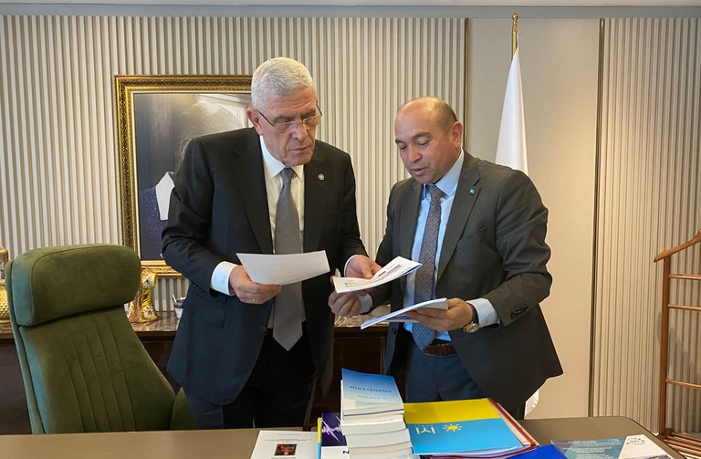 دۇنيا ئۇيغۇر قۇرۇلتىيى ، ئۇيغۇر ئاكادېمىيىسى ۋە شەرقىي تۈركىستان تەتقىقات ۋەخپى مەسئۇللىرىدىن تەركىب تاپقان بىر ھەيئەت 2024-يىلى 6-ئاينىڭ 14-كۈنى يېڭى سايلانغان ئىيى پارتىيە رەئىسى مۈساۋات دەرۋىشوغلىنى ئىشخانىسىدا زىيارەت قىلدى. ئۇيغۇر ۋەكىللەر ئۆمىكى دەرۋىشوغلىغا شەرقىي تۈركىستاندىكى ئىرقىي قىرغىنچىلىق ۋە كىشىلىك ھوقۇق دەپسەندىچىلىكىگە مۇناسىۋەتلىك يېڭى ئەھۋاللارنى يەتكۈزدى.