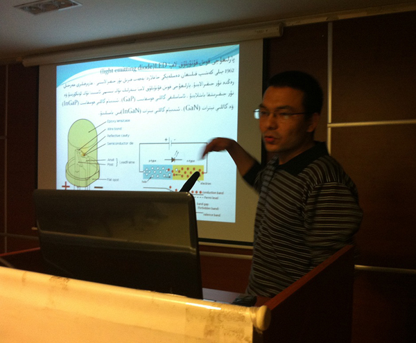 ئابدۇغېنى كۈنىمىزدە ئىنتايىن مۇھىم رول ئويناۋاتقان، ئەمما نەزىرىمىزدىن ئاسانلا ساقىت بولۇپ قالىدىغان لامپىلارنىڭ تارىخى، تۈرى ۋە پرىنسىپى، تەرەققىياتى، كەلگۈسىدىكى ئورنى قاتارلىق مەزمۇنلاردا ئىنچىكە توختىلىپ، يىغىن ئشتىراكچىلىرىغا لامپىلار بولۇپمۇ قوش قۇتۇپلۇق لامپا توغرىسدا تەپسىلى چۈشەنچە بەردى.پارلىغۇچى قوش قۇتۇپلۇق لامپا 1962-يىلى كەشىپ قىلىنغان بولۇپ، قىسقىغىنا 50 يىل ئىچىدە ئۇچقاندەك تەرەققىياتقا ئېرىشكەنلىكىنى، يېقىنقى بىر قانچە يىل ئىچىدە قوللىنىشچان ھالغا كەلگەنلىكىنى، پارلىغۇچى قوش قۇتۇپلۇق لامپىنىڭ باشقا چىراقلارغا قارىغاندا نۇر چىقىرىش ئۈنۈمىنىڭ يۇقىرى، ئۆمرى ئۇزۇن، مۇھىتقا زىيىنى يوق، ئىخچام ۋە ھەر خىل رەڭدە نۇر چىقىرىش ئالاھىدىلىكى بارلىقىنى ئوتتۇرىغا قويدى. يېقىنقى 5 يىل ئىچىدە تىز سۇرەتتە بازارنى ئىگەللىشى مولچەرلەنمەكتە ئىكەنلىكىنى ۋە LED لەر 2020- يىلىغا بارغاندا 80% چىراق بازىرىنى ئىگەللەيدىغانلىقىنى ئوتتۇرىغا قويدى. ئاڭلىغۇچىلارمۇ تۇرمۇشىمىزدىكى مۇھىملىقىنى تېلىفون، كومپىيوتېر قاتارلىق ئېلىكتىر مەھسۇلاتلاردا كۆرسىتىپ كېلىۋاتقان بۇ لامپىلار ھەققىدە خېلى كۆپ بىلىمگە ئىگە بولدى.