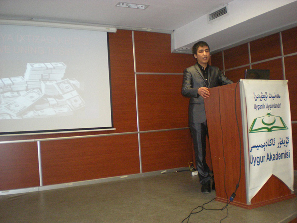 بۇنىڭ كەينىدىن مارمارا ئۇنىۋېرسىتىنىڭ پۇل-مۇئامىلە ۋە بوغالتىرلېق كەسپى ماگېستىر ئوقوغۇچىسى قۇربانجان غېنى «دۇنيا ئىقتىسادىي كىرىزىسى» توغرىسىدا نۇتۇق سۆزلىدى.