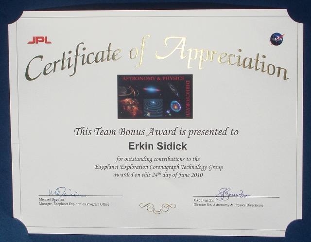 بۇ 6-ئاينىڭ 24-كۈنى JPL دوكتۇر ئەركىن سىدىق ئەپەندىگە بەرگەن يەنە بىر تەقدىرنامە