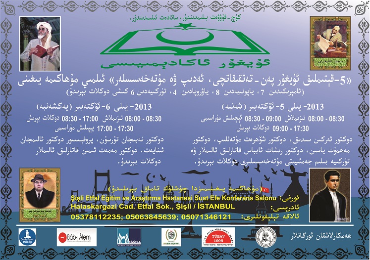 10-ئاينىڭ 5-6- كۈنلىرى (شەنبە، يەكشەنبە ) ئۇيغۇر ئاكادېمىيىسىنىڭ 5-قېتىملىق خەلقئارالىق ئىلمى مۇھاكىمە يىغىنى ئېچىلماقچى بولۇپ، بۇ قېتىملىق ئىلمىي مۇھاكىمە يىغىنىغا ئۇيغۇرلارنىڭ ئەڭ ھۆرمەتكە سازاۋەر،داڭلىق ئالىملىرىدىن فىزىكا ئالىمى دوكتور ئەركىن سىدىق، بىئولوگىيە ئالىمى دوكتور شۆھرەت مۇتەللىپ، دورىگەرلىك ئىلمى ئالىمى دوكتور رىشات ئابباسلاردىن باشقا يەنە ئامېرىكا، ياپونىيە، ياۋروپا، تۈركىيىدىن بولۇپ، ئىلىم-پەن ساھەسىدە زور نەتىجىلەرنى قولغا كەلتۈرگەن جەمئى 24 پەخىرلىك دوكتور-مۇتەخەسسىسلىرىمىز ئىنتايىن ئەھمىيەتلىك تېمىلاردا لېكسىيە بەرمەكچى. بۇ يىغىندا يەنە، تۈركىيە بىلىم جەمئىيىتى باش مۇتەخەسسىسى فاتىھ م شاھىن ئەپەندىمۇ «چەتئەللىك تەتقىقاتچى، ئىلىم-پەن خادىملىرىنىڭ دۆلەتلىك تەتقىقات مۇكاپات ياردەملىرى ئېلىش ئىمكانلىرى» ھەققىدە ئىنتايىن پايدىلىق ئۇچۇرلارنى بەرمەكچى. بۇنداق بىر پۇرسەت بەلكىم، ھاياتىڭىزدا قايتا كەلمەسلىكى مۇمكىن…شۇڭا بارلىق قېرىنداشلارنىڭ بۇ تېپىلغۇسىز پۇرسەتنى قولدىن بەرمەي، يىغىنغا ۋاقتىدا ئىشتىراك قىلىشىنى، پەخىرلىك ئالىملىرىمىز بىلەن دىدار غەنىمەتتە، ھەمسۆھبەتتە بولۇشىنى چىن كۆڭلىمىزدىن ئۈمىت قىلىمىز، يولۇڭلارغا قارايمىز…