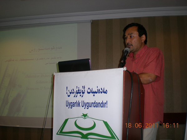 دوكتور ئابدۈشۈكۈر ئابدۇرەشىد «كومپيۇتېر سىستېمىسىدىكى مەۋھۇملاشتۇرۇش» دېگەن تېمىدا دوكلات بەردى. (ئۇيغۇر ئاكادېمىيىسى 3-قېتىملىق خەلقارا ئىلمىي مۇھاكىمە يىغىنىدا)